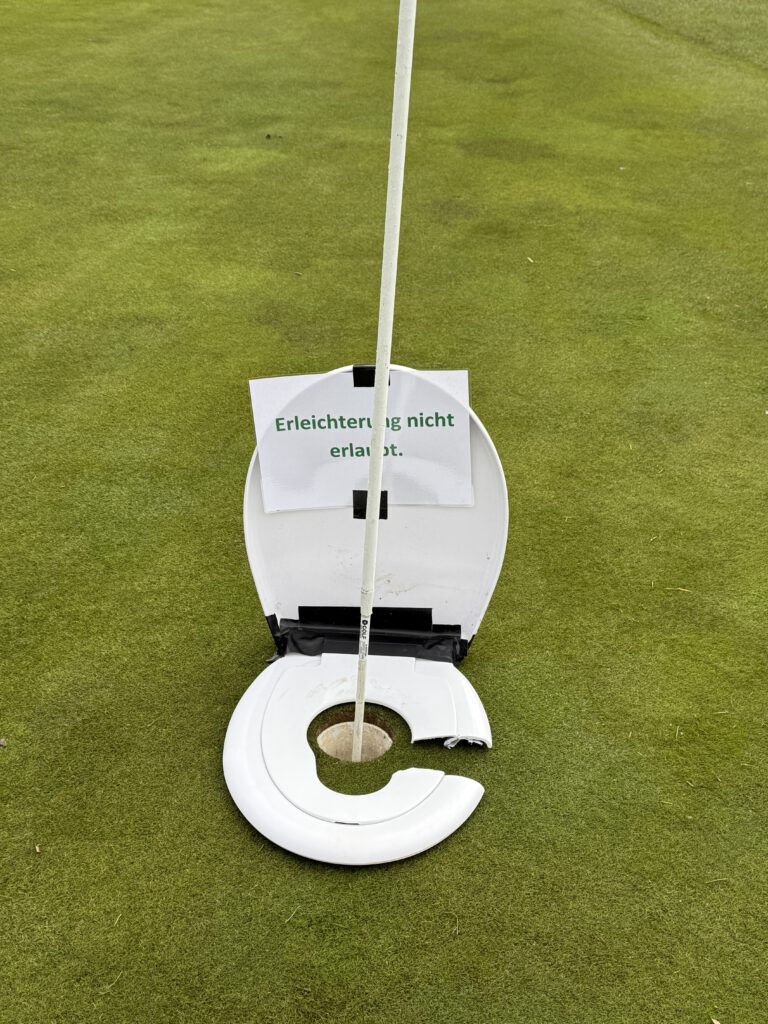 Auf Loch 9 wartete zum Abschluss ein Highlight des Turniers: Ein Putt in ein Loch, das von einer stolz aufgeklappten Toilettenbrille „verteidigt“ wurde. Unter lautem Gelächter griffen alle mutig zum Putter und versuchten, die Herausforderung zu meistern. Ein Moment, der so viel Spaß machte, dass er sicher in die Greenkeepers-Revenge-Geschichte eingeht.