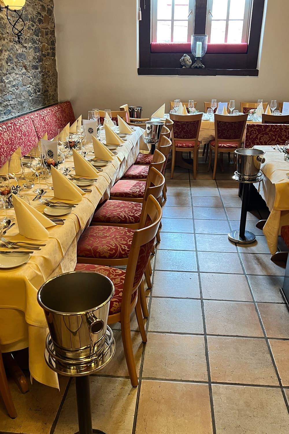 Als Location wurde ein stilvoller Ort im Herzen von Braunfels ausgewählt. Pünktlich um 17:00 Uhr begrüßten Andreas und Klaus gemeinsam mit ihren Frauen, deren Mithilfe einen großen Anteil am Gelingen der Veranstaltung hatte, alle Gäste mit einem Sektempfang in einem liebevoll dekorierten Ambiente.