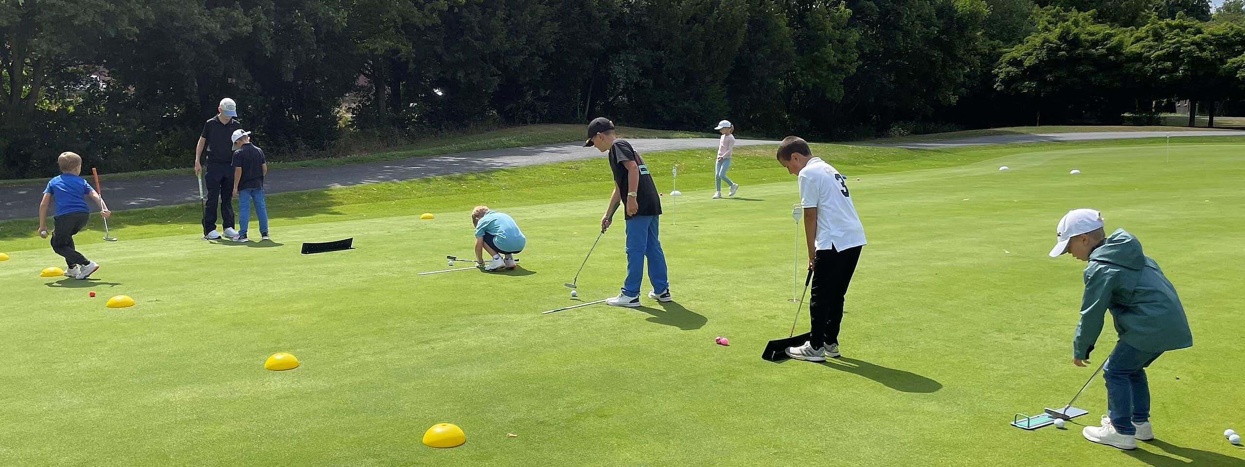 Für Kinder und Jugendliche von sechs bis 16 Jahren bieten wir ein wöchentliches Training an. Dabei steht der Spaß immer an erster Stelle. Ganz spielerisch lernen die Nachwuchsgolfer die Grundlagen des Sports kennen: erste Schwünge, gezieltes Putten und natürlich das Spiel auf dem Platz. Die benötigte Ausrüstung stellen wir zu Beginn zur Verfügung – einem unverbindlichen Schnuppertraining steht also nichts im Weg.